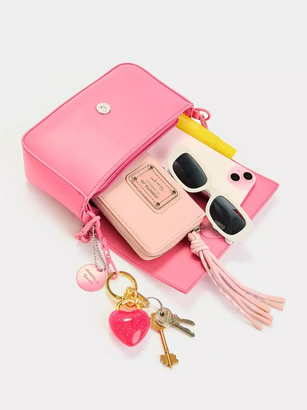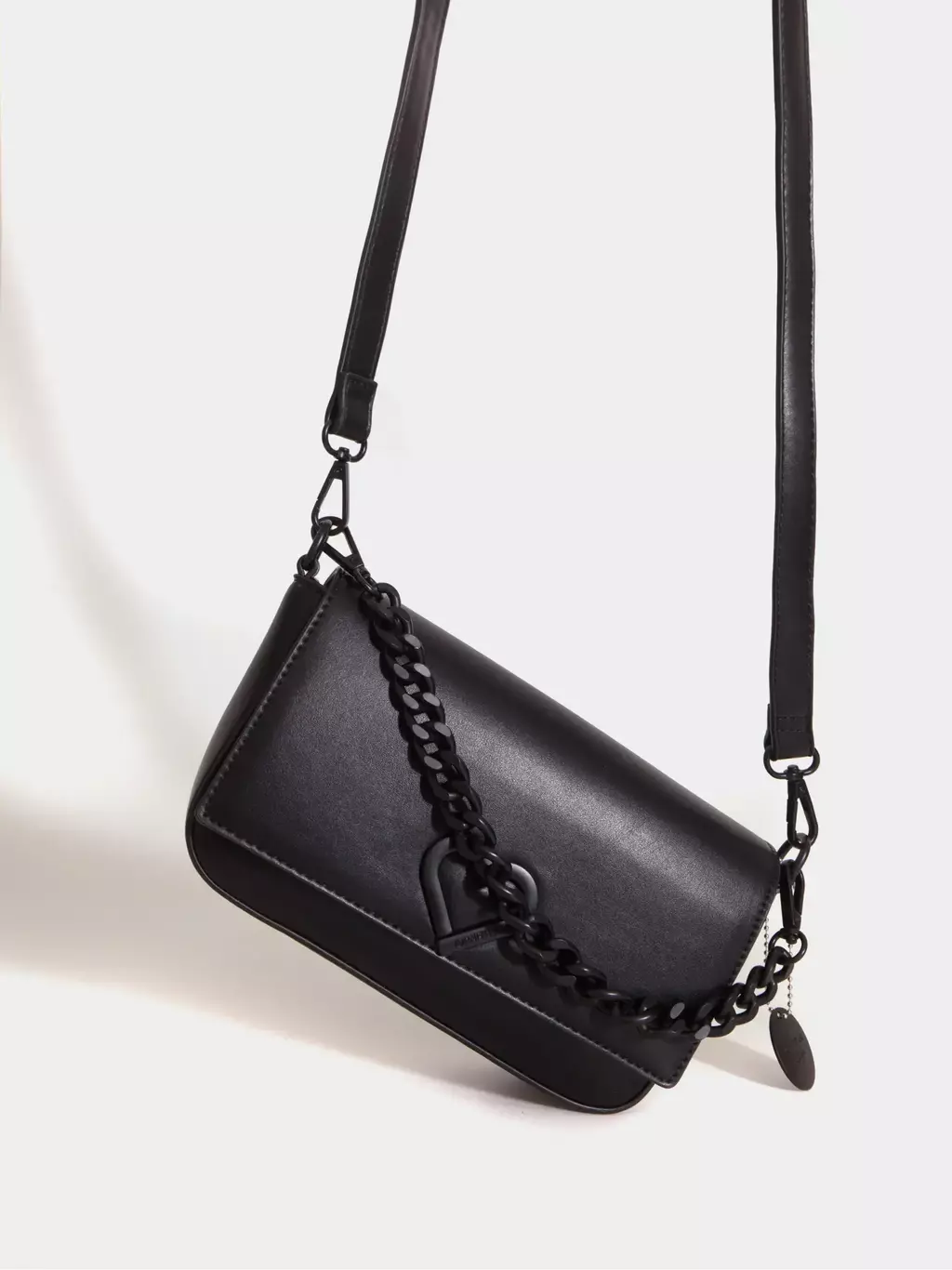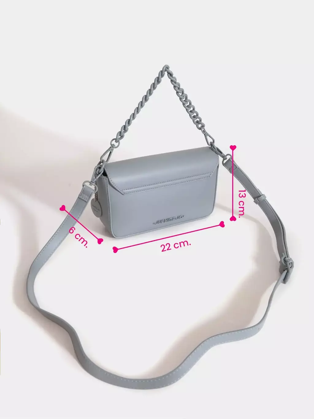 Es elegante y atemporal. Perfecta para ir a las salidas con amigas,para una cena romántica con un vestido, o incluso para un look casual con zapatillas y campera de cuero. Su diseño cuenta con un aplique de logo de corazón y viene con doble correa, una larga que es extraíble y regulable. Además, viene con correa de cadena que le suma un detalle sofisticado. Su método de apertura es por solapa y botón imantado.