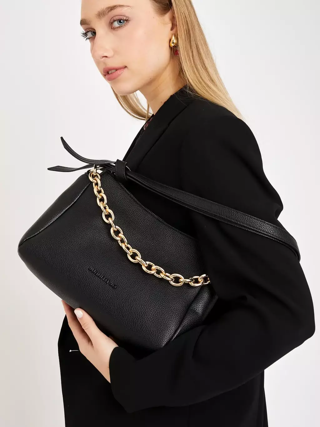 •Cartera para mujer con asas dobles y detalle de cadenas metálicas.