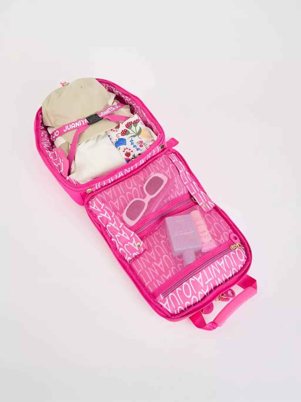 Mochila Amarilla Juanita Jo es pura energía y funcionalidad. Está confeccionada en novytex resistente, su diseño tipo valija con apertura total y elásticos internos te permiten organizar todo sin esfuerzo, asegurando que nada se mueva. Tiene múltiples bolsillos y una faja trasera para valija la convierten en la mejor aliada para escapadas cortas o viajes largos.